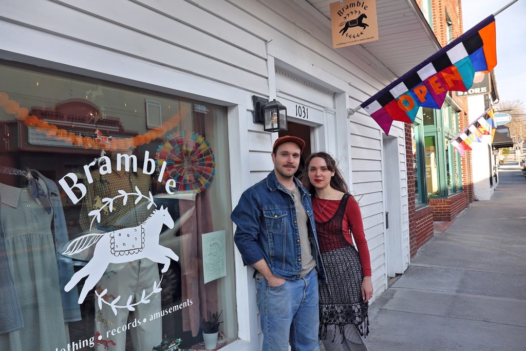 Frankie designed the Bramble logo and made several of the signs herself. She describes the store as offering a little something for everyone. Shoppers can browse a selection of vinyl records, vintage clothing, perfumes, legos, art and knick knacks.