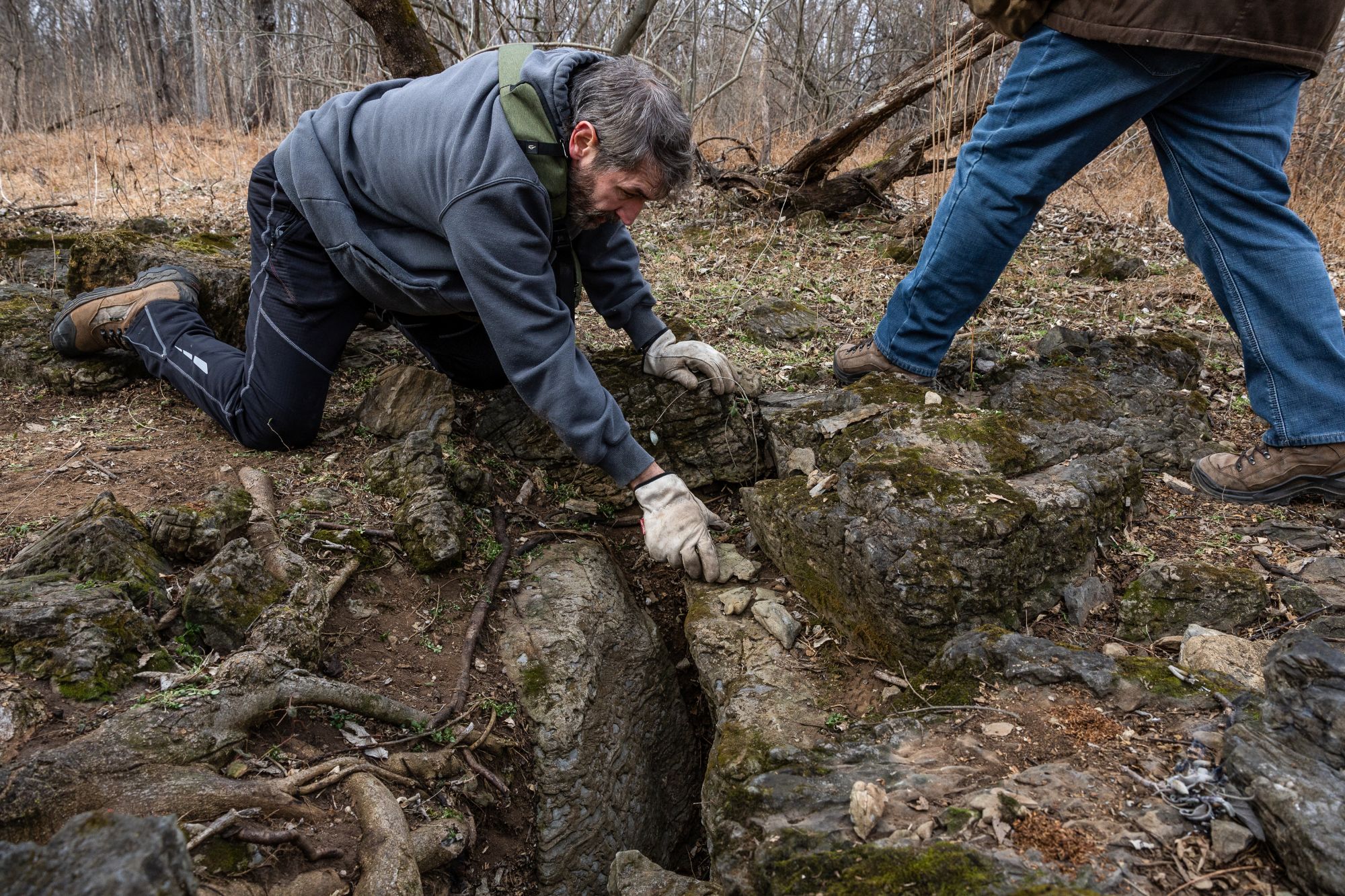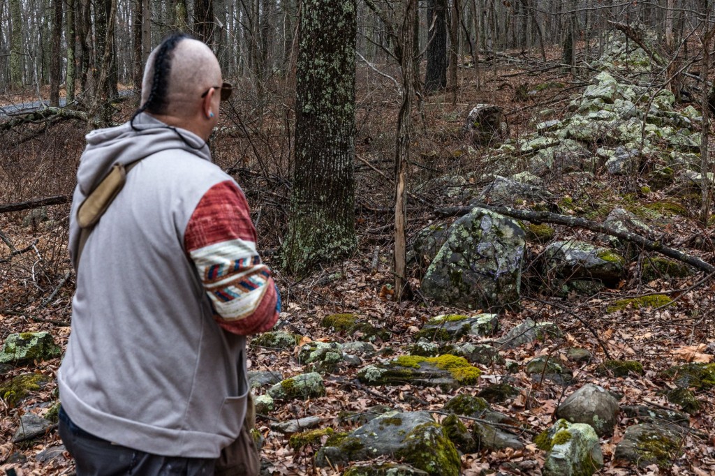As time passes and “stick season” ends, Matthew “Maasaw” Howard walks through the barren understory, pointing to stone mounds and oddly shaped rocks. “These stones are not naturally occurring; human hands worked on them,” Howard said.