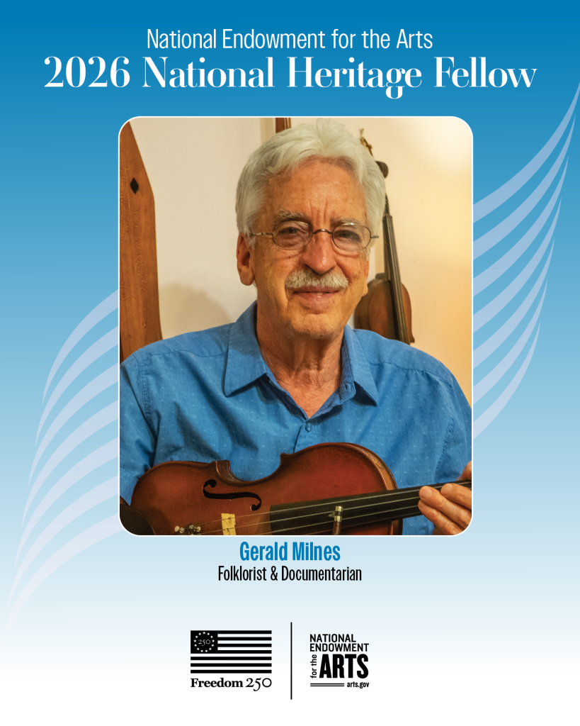 Charleston — Gerald “Gerry” Milnes of Elkins, West Virginia, has been named a 2026 National Endowment for the Arts’ National Heritage Fellow, the nation’s highest honor in the folk and traditional arts. These lifetime awards are given in recognition of both artistic excellence and efforts to sustain cultural traditions for future generations. Milnes was nominated by the West Virginia Humanities Council, where he served as a Board member from 2014 to 2020.