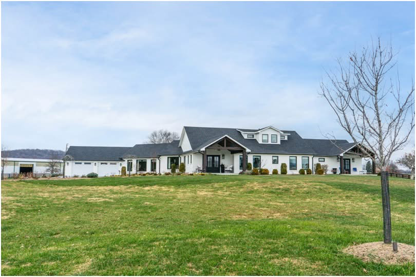 This beautiful, completely renovated home is crafted with intentional natural light and open spaces on 22 acres. Five bedrooms, five baths, and a very spacious kitchen make it perfect for hosting guests and entertaining. A sixteen-foot bifold door opens from the sunken living room to the seamless stone patio for outdoor entertaining with wonderful vistas.